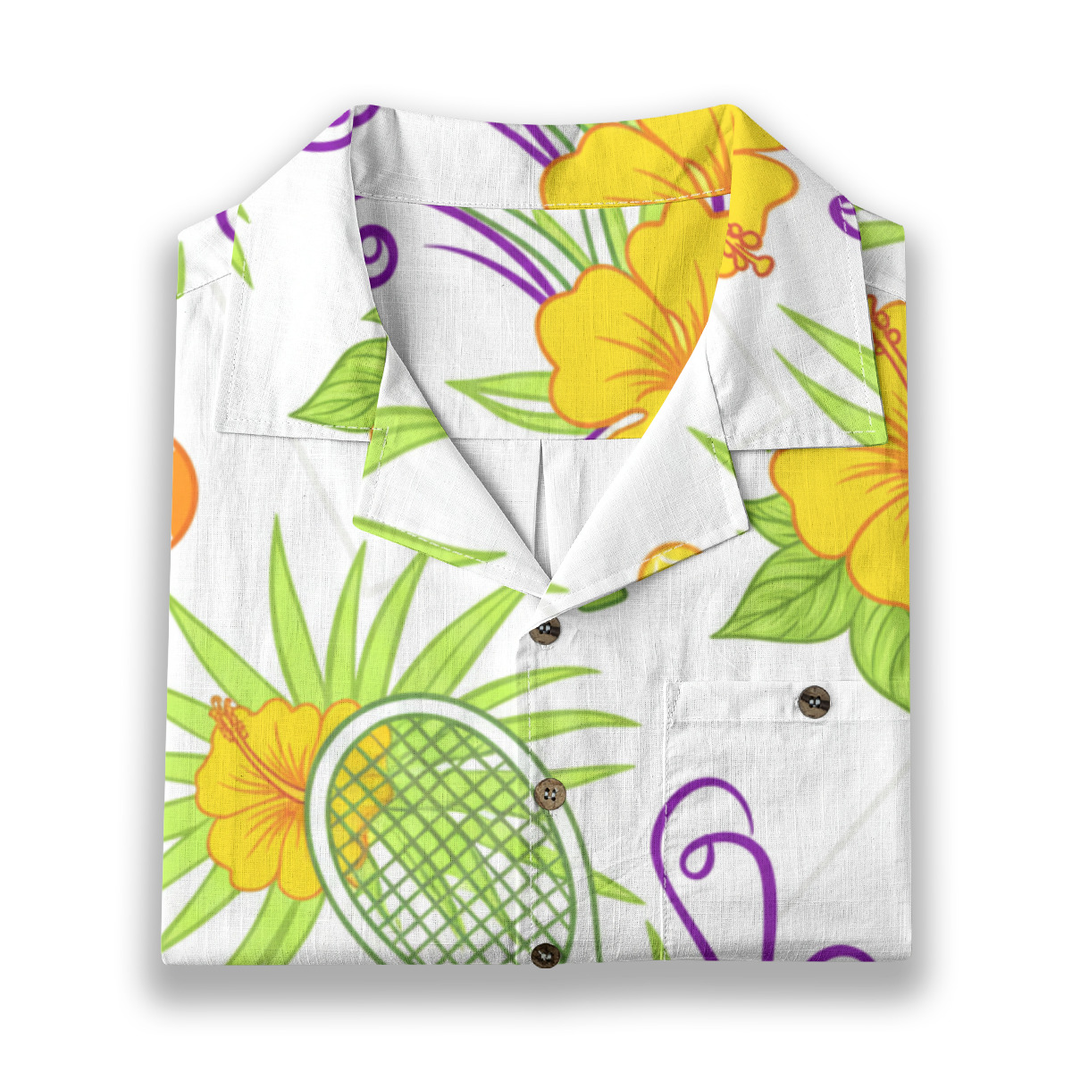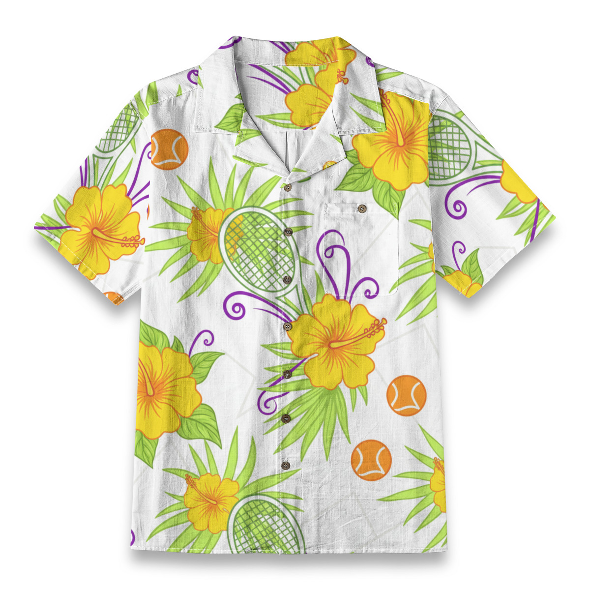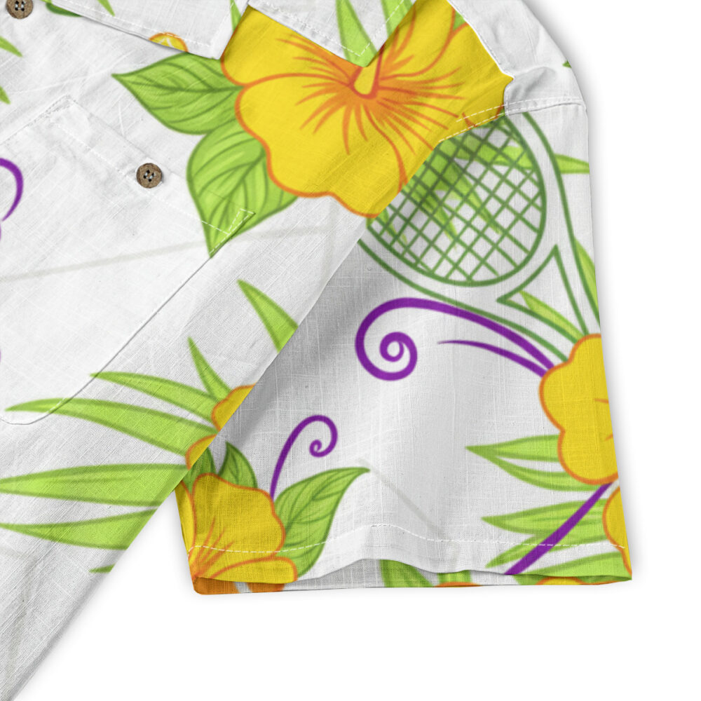 Tennis rackets are woven through hibiscus blossoms in a bright, breezy print that captures the feeling of a perfect sunny match day. The flowers soften the sporty elements just enough, making the whole thing feel more like a weekend at the island club than a serious competition. Love all, and looking good about it.