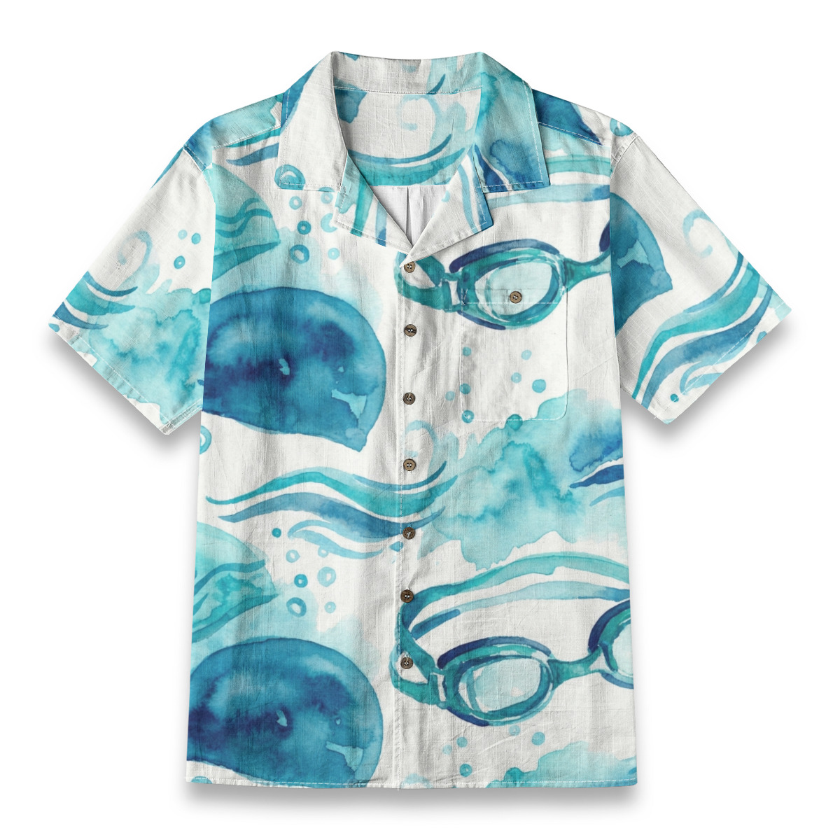 Watercolor Swim Goggles & Ocean Waves Hawaiian Shirt – Sport Hawaiian Shirt